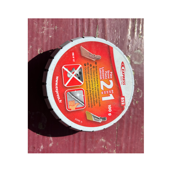 Pâte à étamer 2 en 1 : Nettoye et étame les Pannes en cuivre des fers à souder le Zinc, le cuivre, les gouttières, descentes et feuilles. Pot de 100g